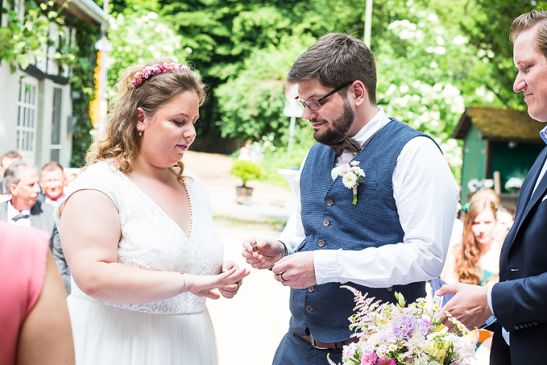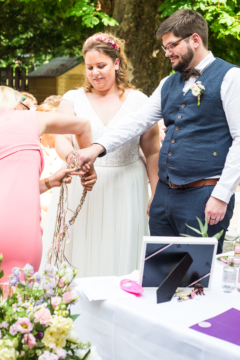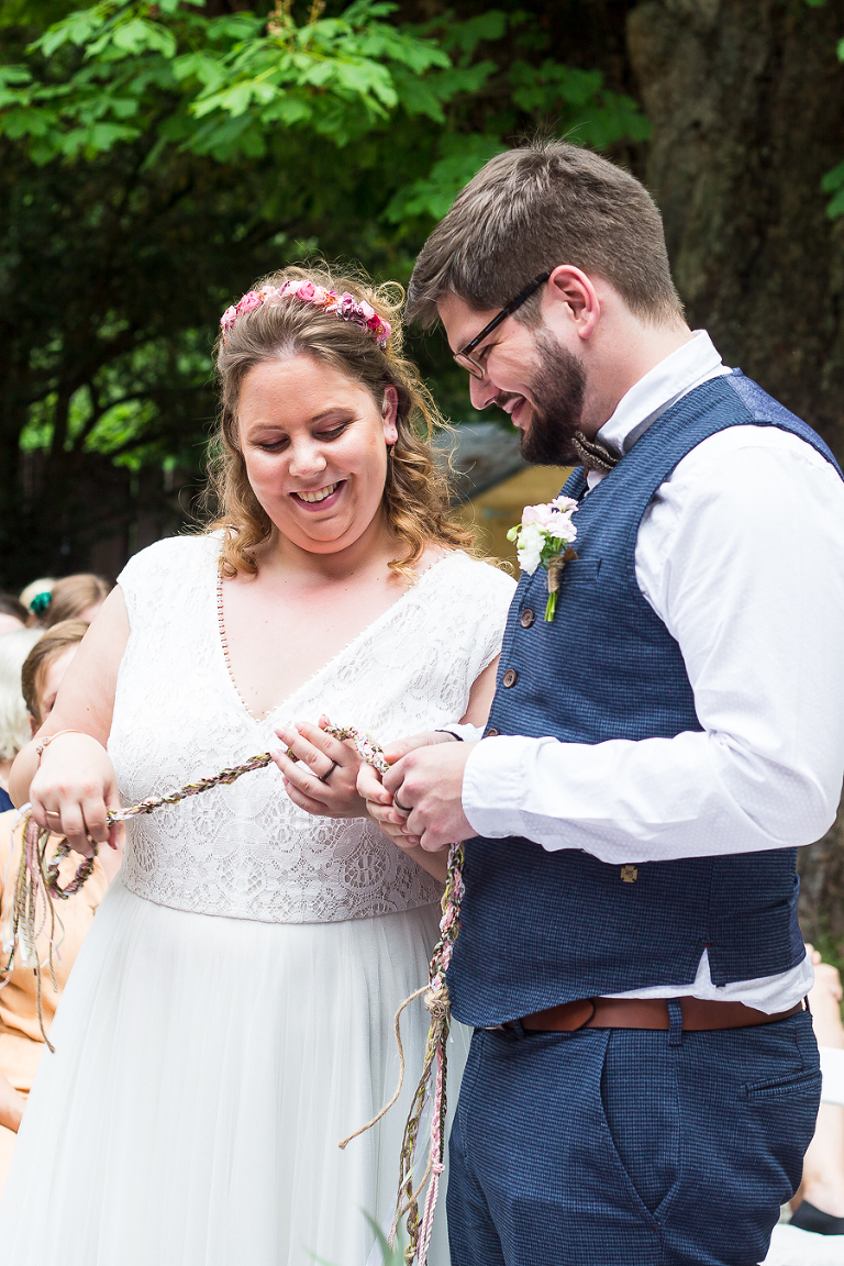 Anfang des Sommers dürfte ich Melanie und Daniel zur Kupfersiefer Mühle begleiten, wo die Beiden eine freie Trauung mit irischen Einfluss feierten. Die Zwei sind totale Irland-Fans und daher hatten sie sich ein paar irische Traditionen bei Ihrer Trauung gewünscht, wie z.B. das Hochzeitsband.